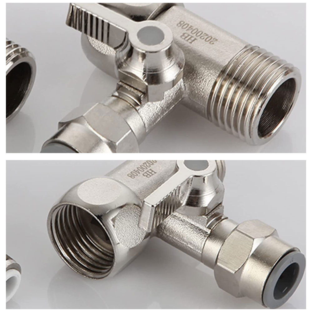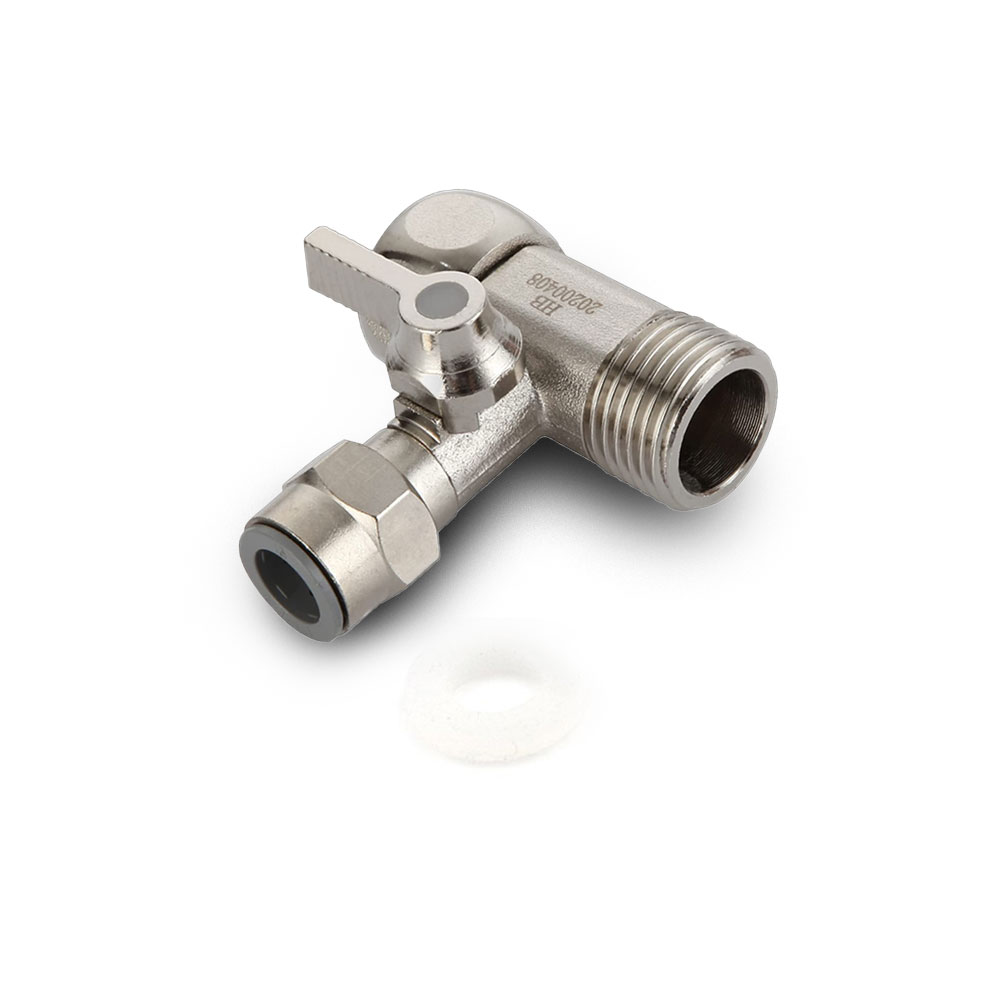 Elzáró csappal ellátott, fém bekötő-elosztó csatlakozó idom. A bekötő idom a pult alá szerelendő víztisztítók leágazásának vízhálózatra (sarokszelepre) történő csatlakoztatásához használható.