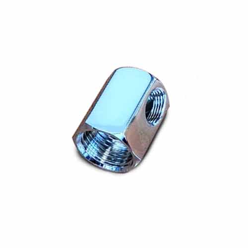1/4"-os furattal ellátott, zárt fém bekötő csatlakozó idom víztisztítók és lúgosítók leágazásának vízhálózatra történő bekötéséhez, olyan esetre, ha nincs szükség leágazásra.