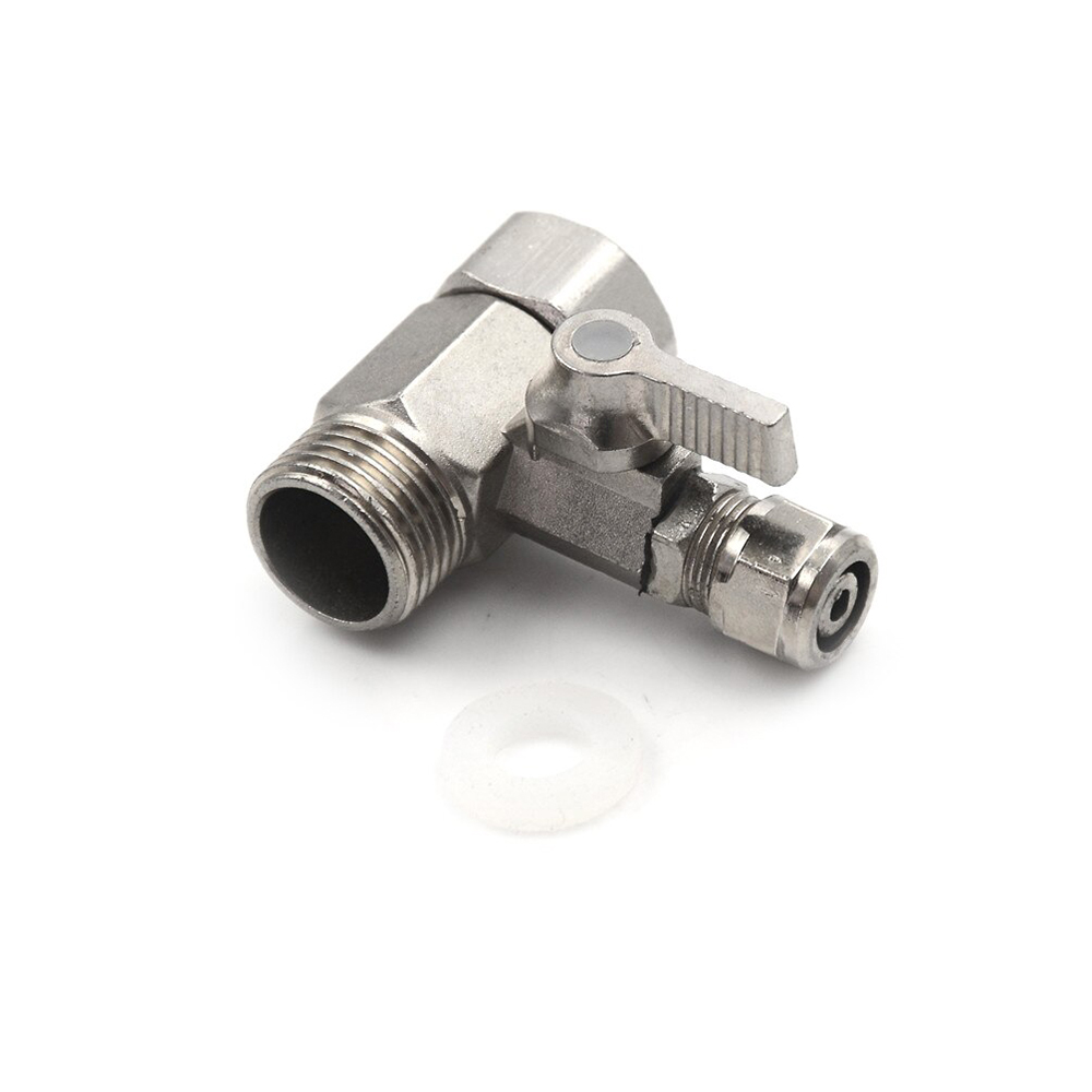 Elzáró csappal ellátott, fém bekötő-elosztó csatlakozó idom. A bekötő idom a pult alá szerelendő víztisztítók leágazásának vízhálózatra (sarokszelepre) történő csatlakoztatásához használható.