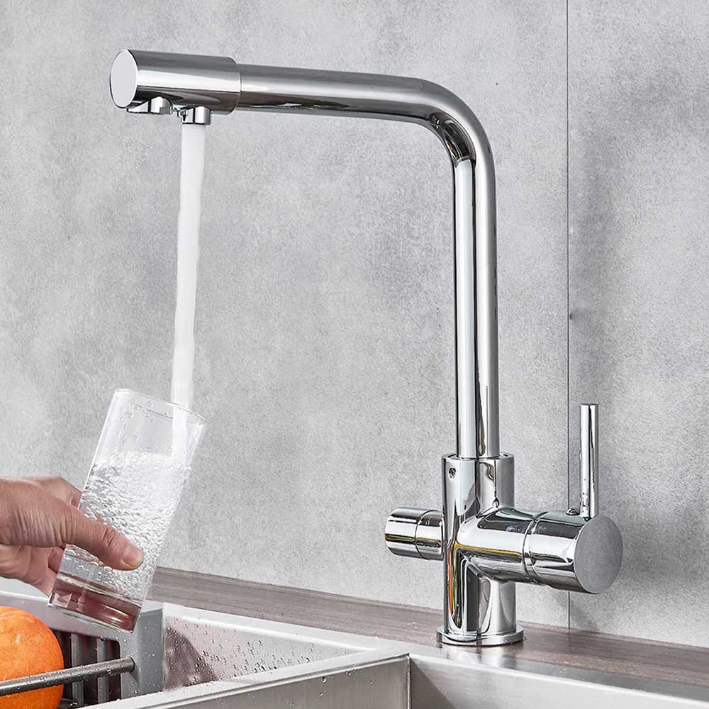 Dekoratív, háromutas (pl. RO vízhez, hideg és meleg csapvízhez), kerámiabetétes, konyhai csaptelep. Alkalmazásával nem kell külön lyukat fúrni a pulton a RO (Fordított ozmózis elvén működő) háztartási víztisztító tisztavíz csaptelepének. A meglévő konyhai csaptelep helyére kell felszerelni.