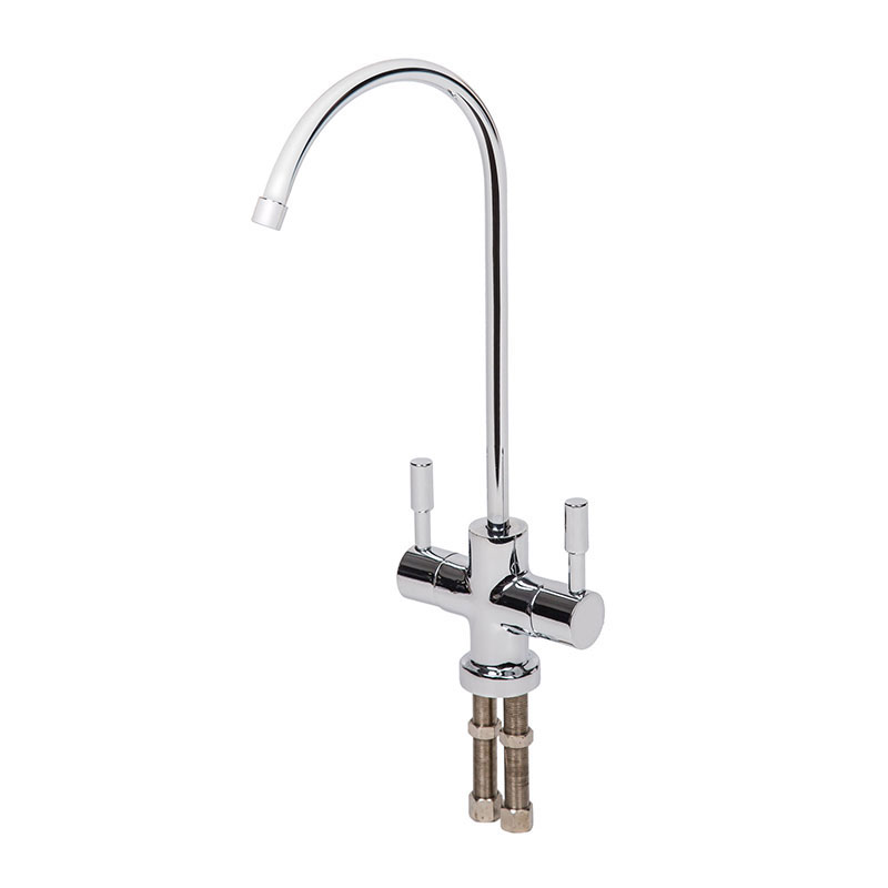 A dupla csaptelep alkalmazásával lehetőség van nem csak lágyvíz, hanem ásványvíz vételére is. Így a család minden tagja élvezheti a RO víztisztító által megtisztított vizet: az is, aki lágyvíz párti és az is, aki ásványvíz párti. (Ezt a csapot külön lehet rendelni, nem a RO víztisztítókhoz gyárilag járó egyutas krómozott csaptelep helyett!)