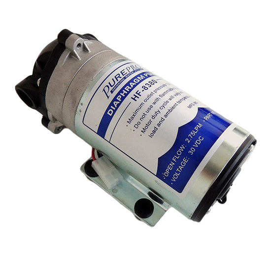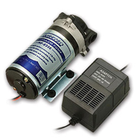 Nagyteljesítményű (High Flow) Diaphragm nyomásfokozó pumpa adapterrel RO (Fordított ozmózis elvén működő) víztisztítókhoz.